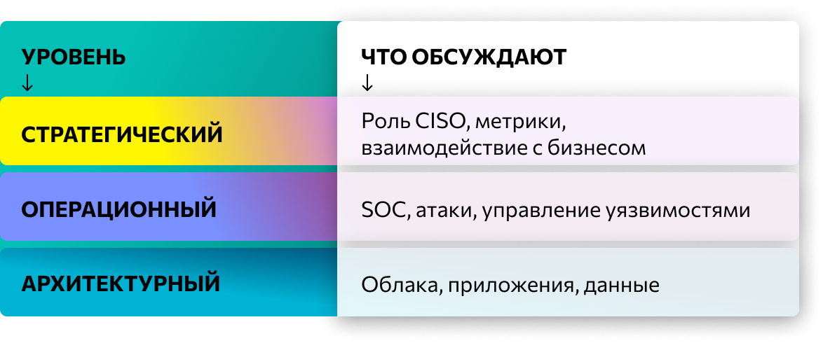 Это закрытые круглые столы для руководителей ИБ, где обсуждаются отраслевые вопросы.